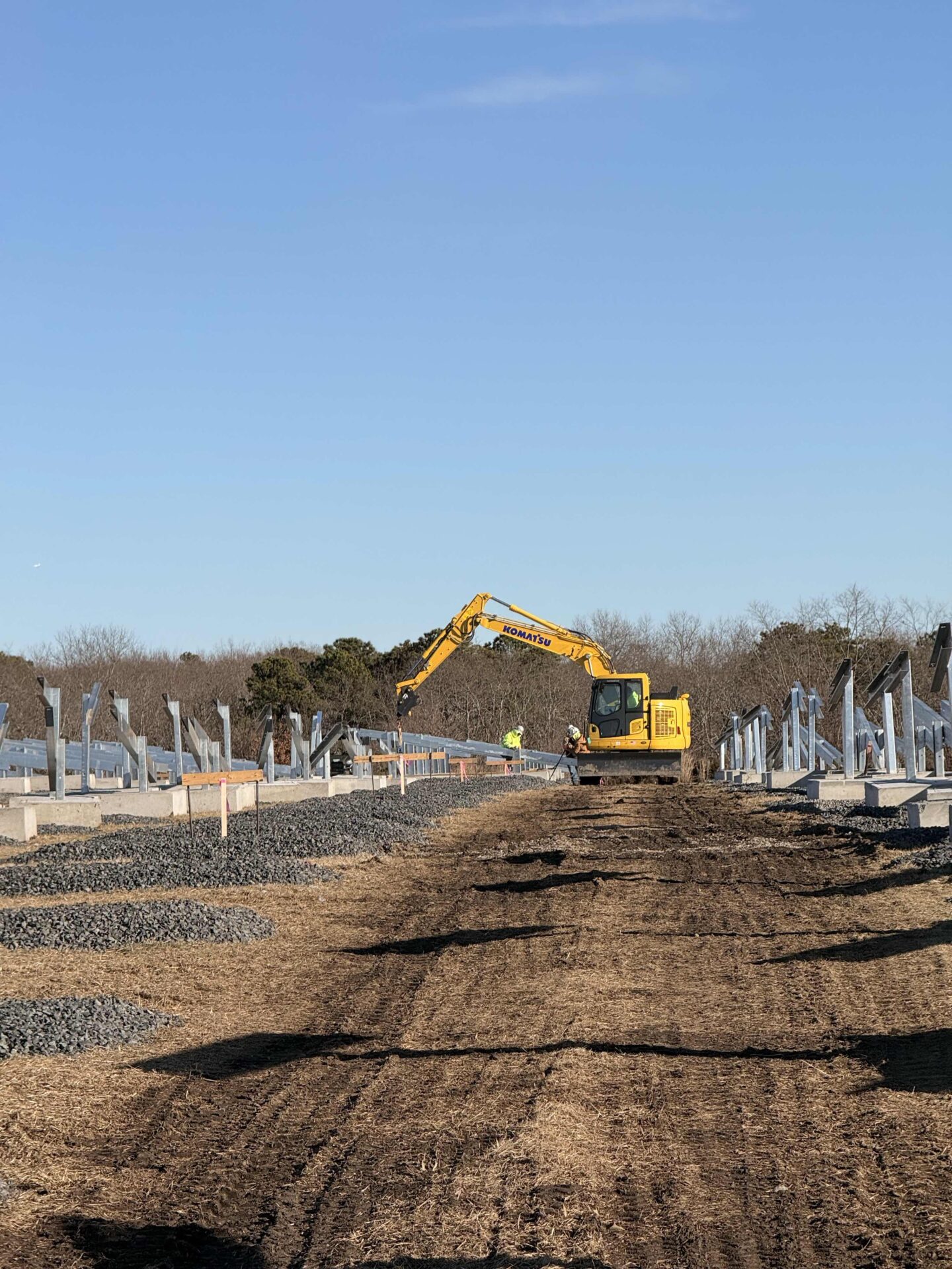 Line of Business: UtilityLocation: Monmouth CountyServices Provided:Offloading/Staging of MaterialsSupply and install stone pads for rackinginstall foundation blocksinstall racking and hardwaresite restorationlandscaping